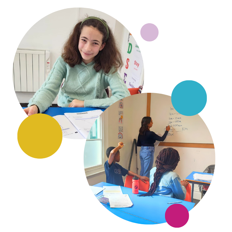 Using our own teaching resources developed by our team of maths specialists, our maths tuition is fully aligned with the national curriculum and meets requirements of entrance exams such as the 11 plus. Our small classes and individualised teaching approach offer students the opportunity to learn at their own pace, whilst our maths tutors use a multi-sensory approach including verbal explanations, on the board explanations, and various teaching prompts such as clocks, counters, number lines and flash cards to support all types of learners.